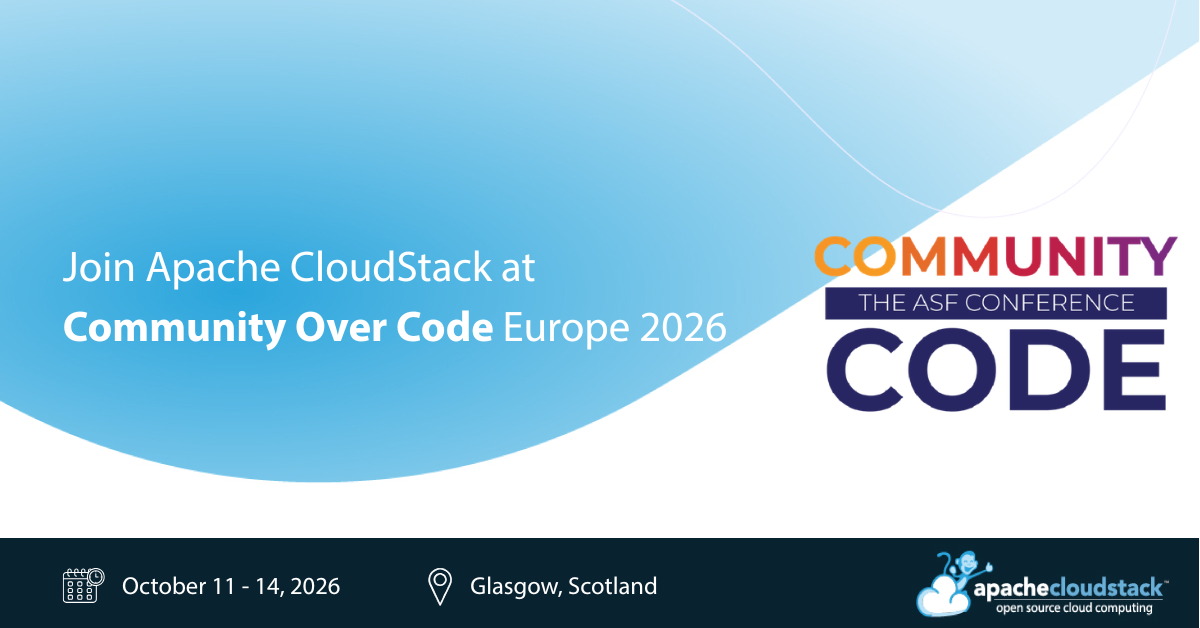 If you have ideas for topics related to Apache CloudStack and plan to attend Community Over Code Europe 2026, we encourage you to submit a proposal to the CloudStack track.